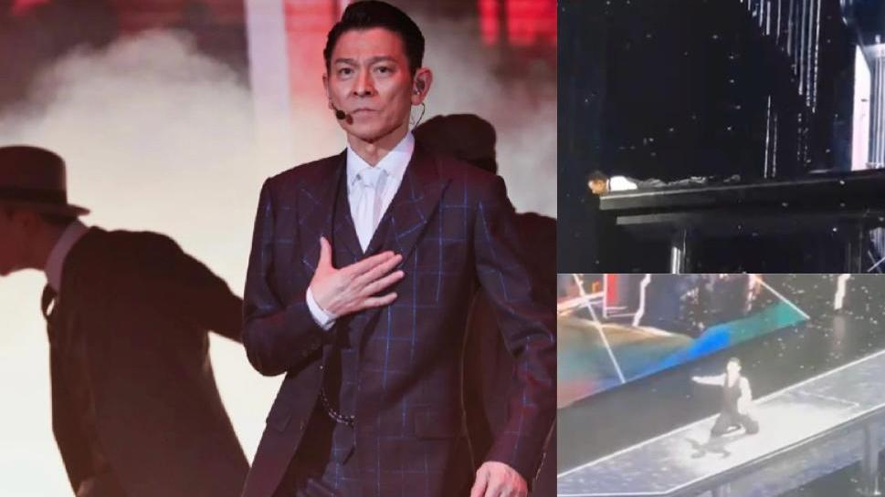 劉德華演唱會2024|華仔跪地跣台「撠腳」變趴台 頭伸出高台邊超驚險