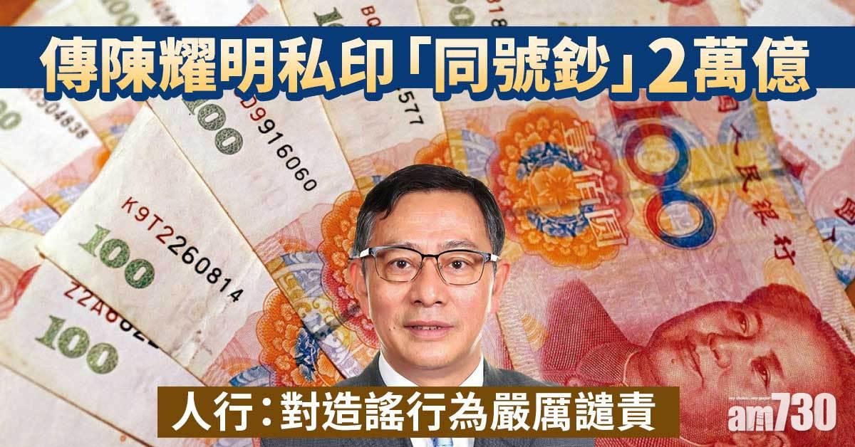 傳陳耀明疑私印「同號鈔」2萬億人民幣 人行:是謠言已報案