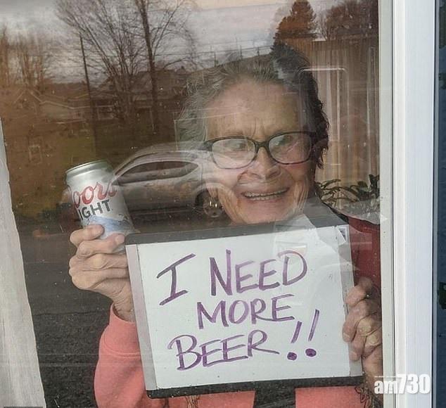 【新冠肺炎】控疫禁足 鬼馬婆婆屋內舉牌「我要更多啤酒!」