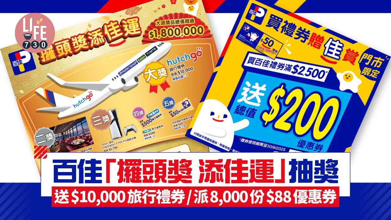 百佳「攞頭獎 添佳運」抽獎  送$10,000旅行禮券/派8,000份$88優惠券