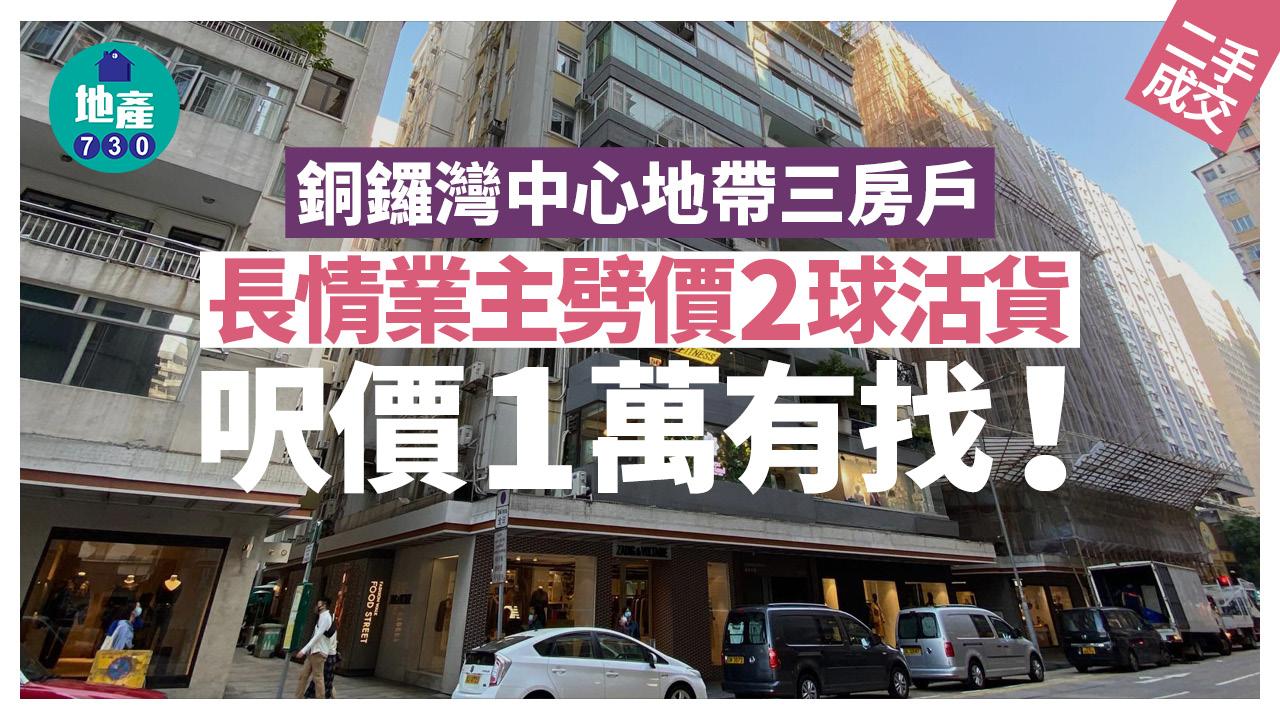 長情業主劈價2球沽銅鑼灣中心地帶三房戶 呎價1萬有找|二手樓成交