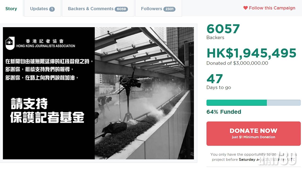 【逃犯條例】眾籌保護記者基金100萬達成 記協提高目標至300萬
