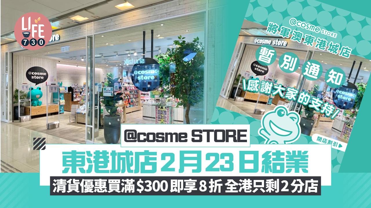 結業潮|@cosme STORE東港城店2月23日結業 清貨優惠買滿$300即享8折 全港剩2分店