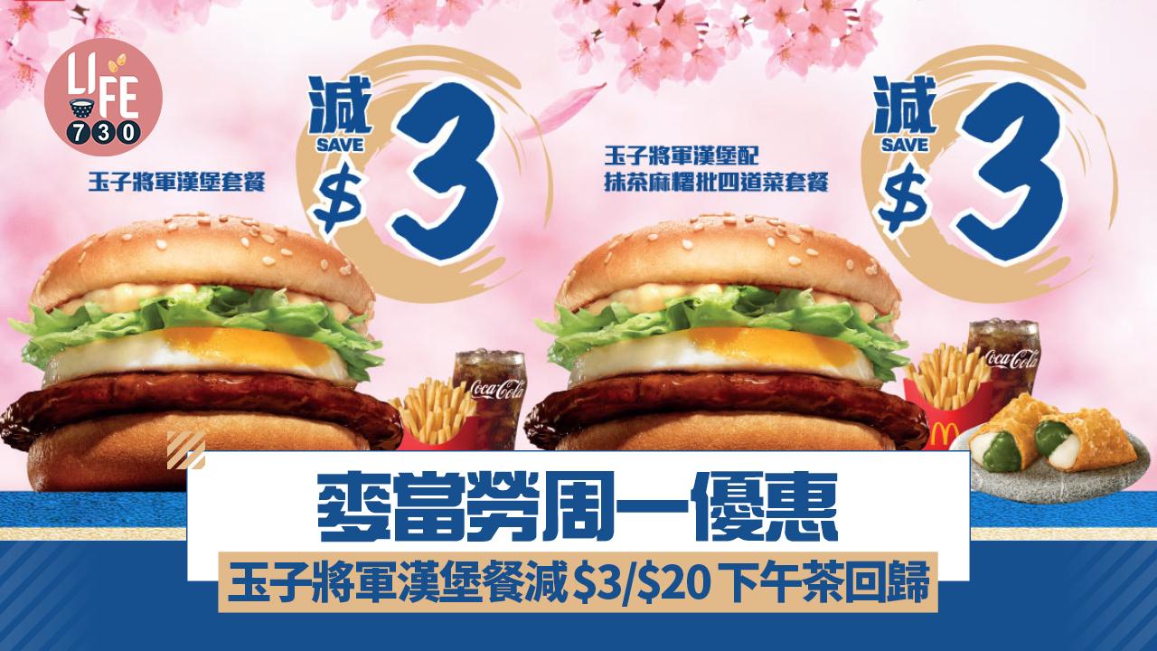 麥當勞周一優惠 玉子將軍漢堡餐減$3/$20麥麥配下午茶回歸