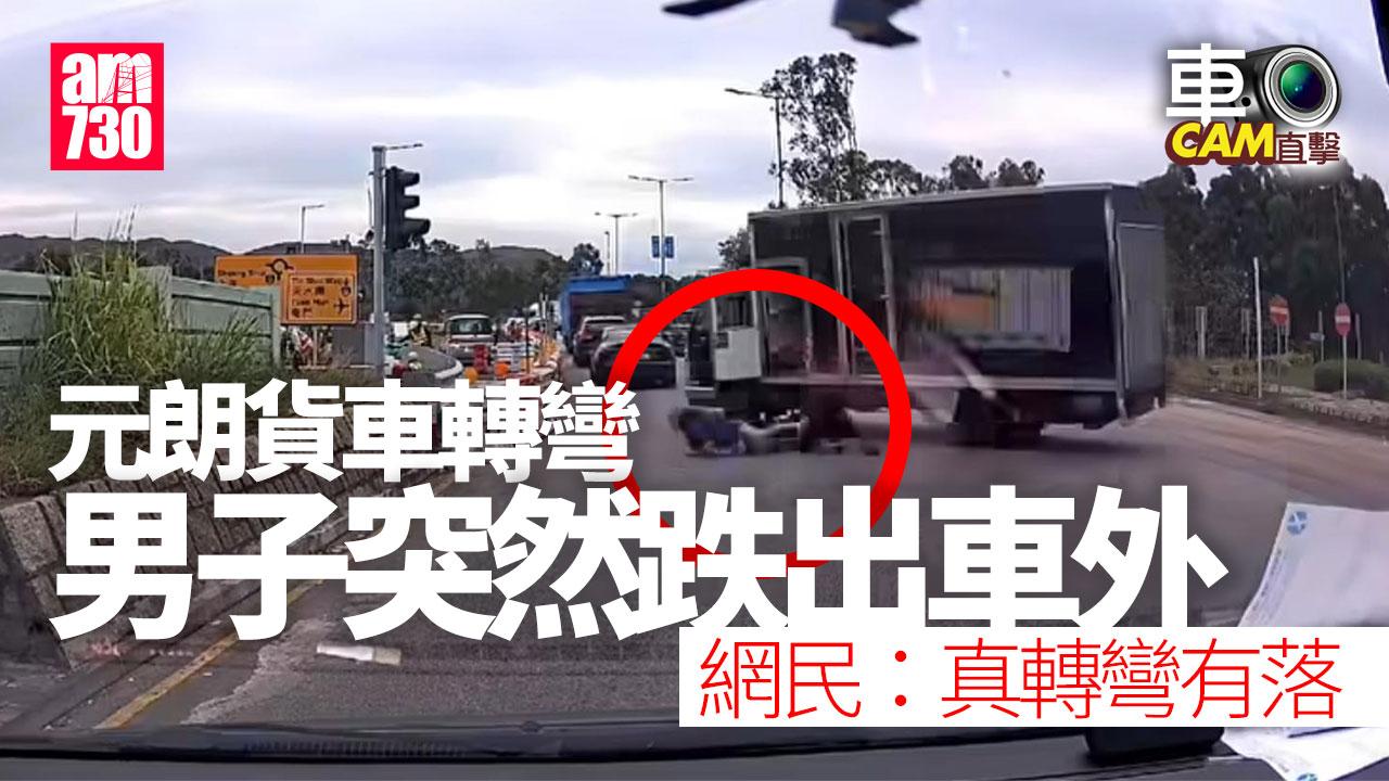 車Cam直擊|元朗貨車轉彎男子從車斗跌出馬路翻滾 網民:真轉彎有落