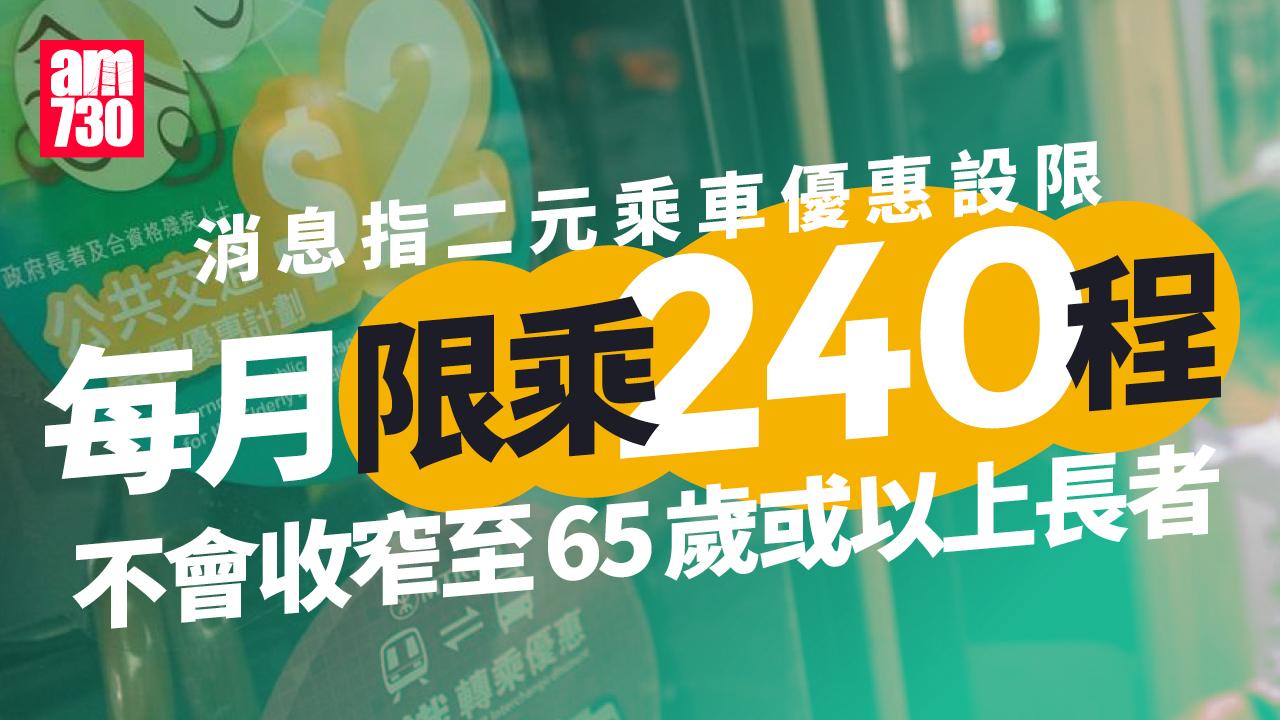 二元乘車優惠|消息:每月限乘240程 10元以上車資以兩折計算