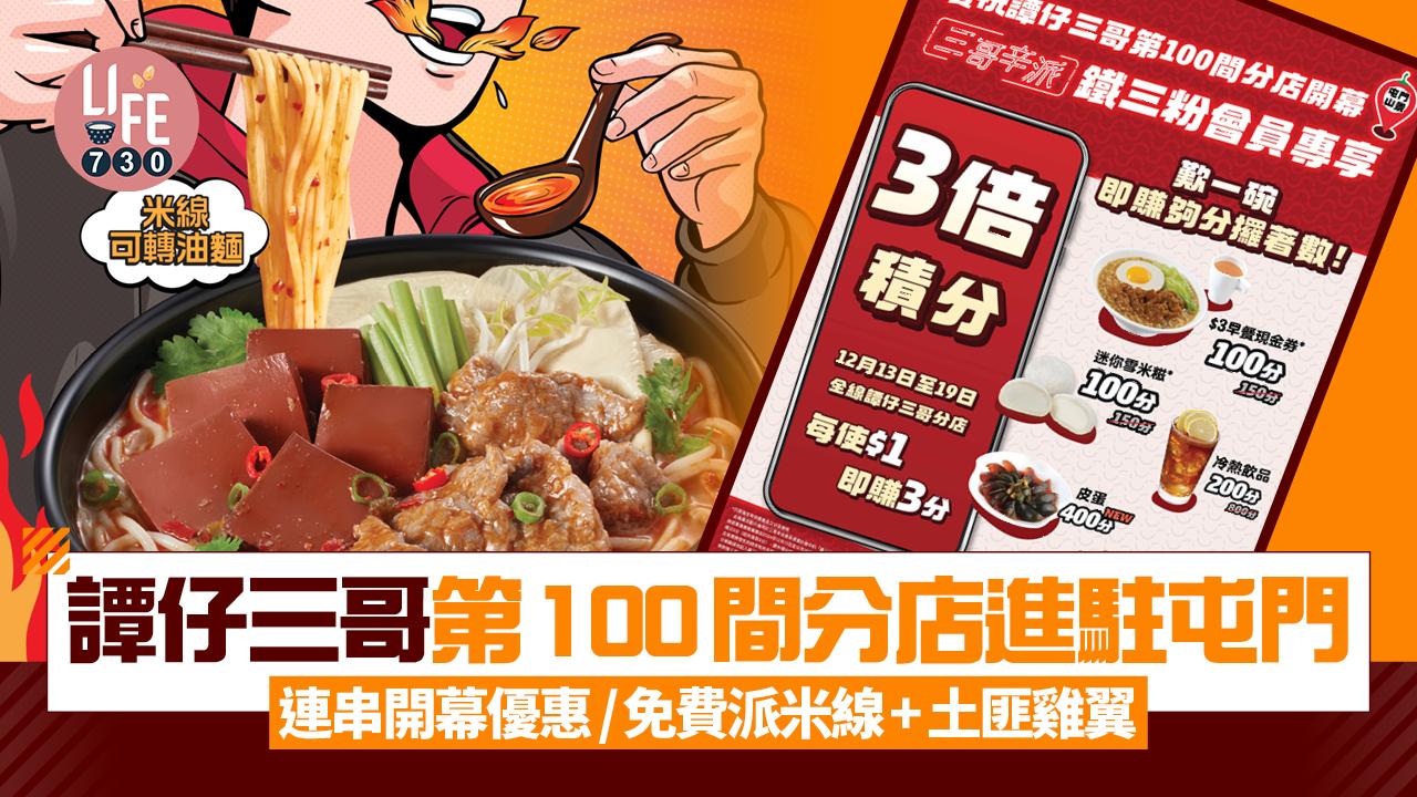 譚仔三哥第100間分店進駐屯門!連串開幕優惠/免費派米線+土匪雞翼