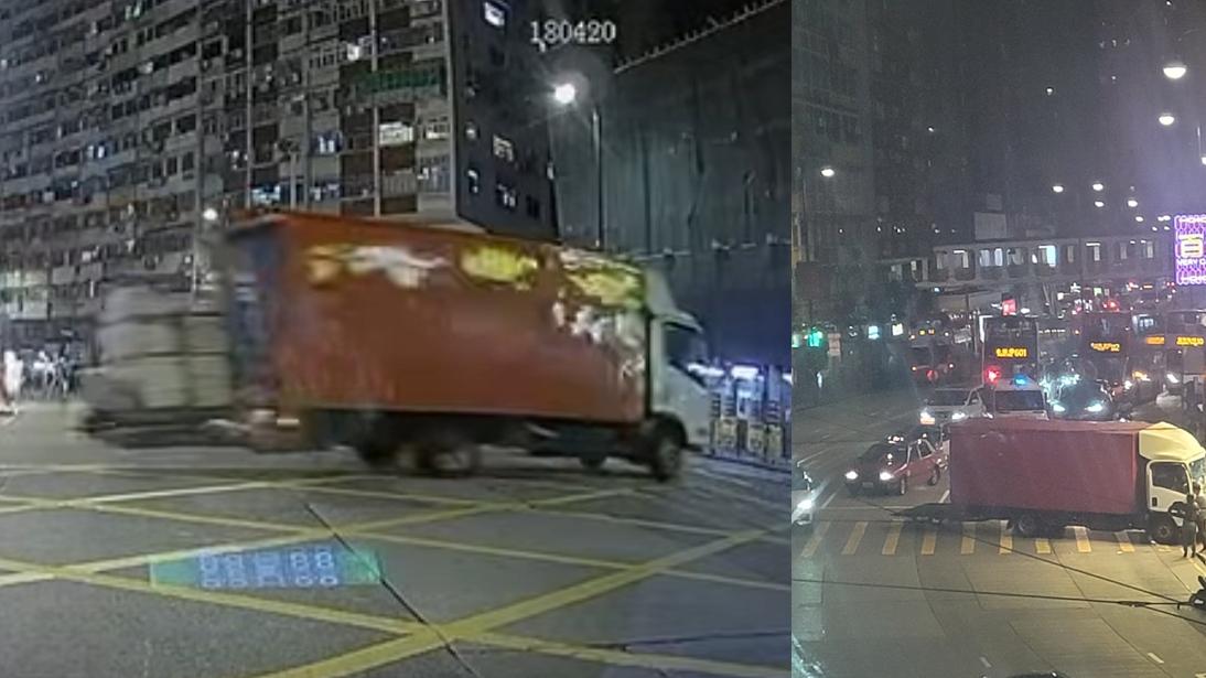 車Cam直擊|北角貨車失控直衝落長命斜撼燈柱 77歲工人送院司機被捕