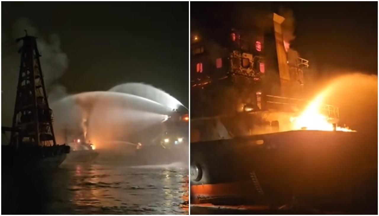 愉景灣廢置貨輪起火 消防滅火輪到場灌救(有片)