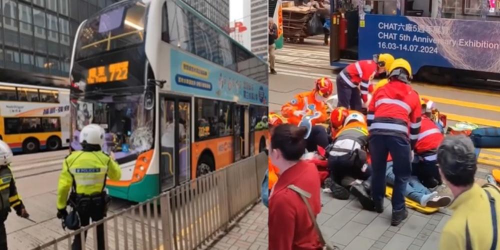 中環德輔道中女子捱巴士撞 頭傷腳骨折一度昏迷