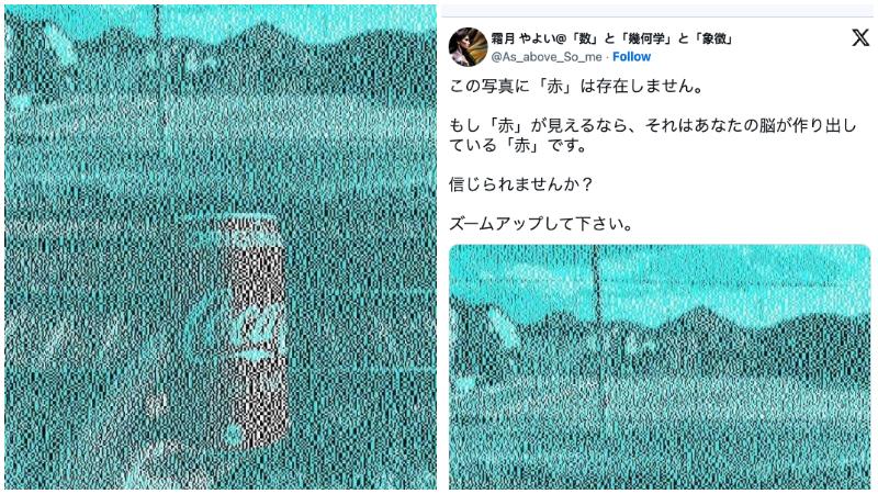 日本瘋傳可口可樂錯覺圖 紅色罐身放大後全是黑色色塊