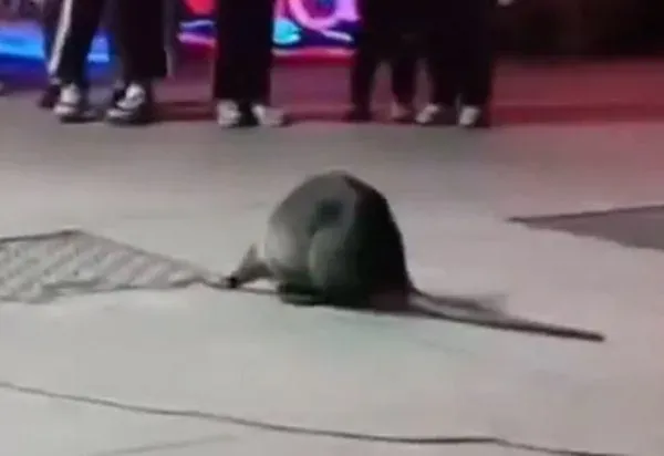 微博帳號「愛湛江」分享這段巨鼠出沒的影片,「北方老鼠像老鼠,南方老鼠像喪彪」,而「喪彪」為廣東、香港戲劇反派角色常見的外號,形容對方「又壞又嚇人」,用在形容這隻巨鼠身上,更顯其驚人程度。影片中這隻巨鼠身材結實、屁股又大又圓,還有一條長長的尾巴,在夜晚街頭緩慢爬行,即便周遭都是人群,牠也絲毫不懼。