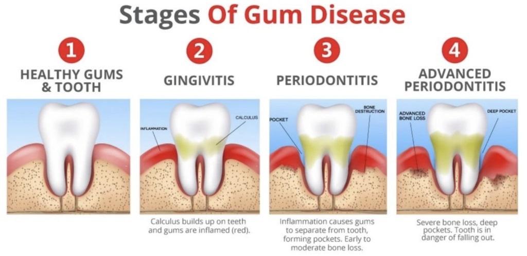 牙周病的4個階段。