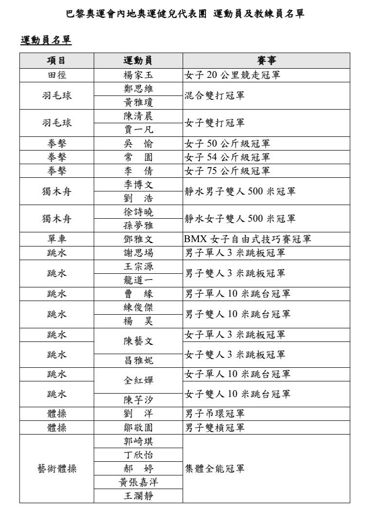 國家隊訪港|名單出爐 全紅嬋潘展樂孫穎莎等65名運動員將來港