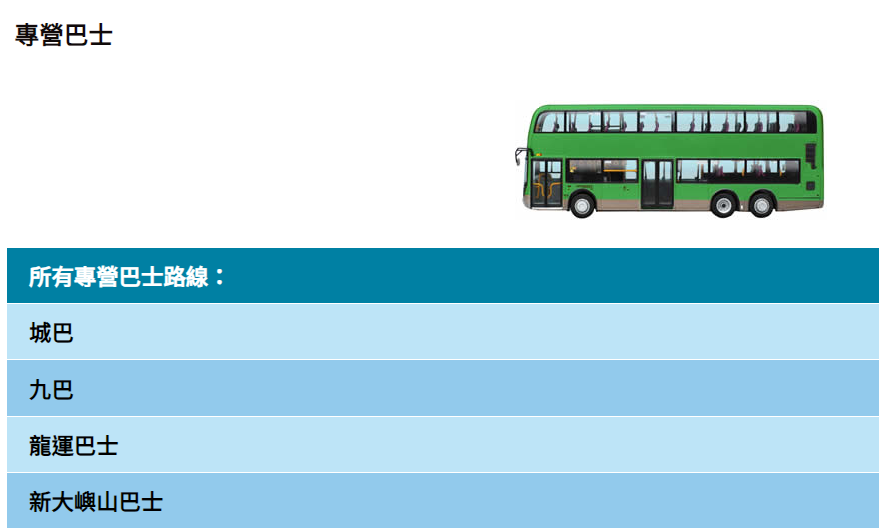 ▼公共交通費用補貼計劃涵蓋的公共交通服務如巴士、港鐵等▼