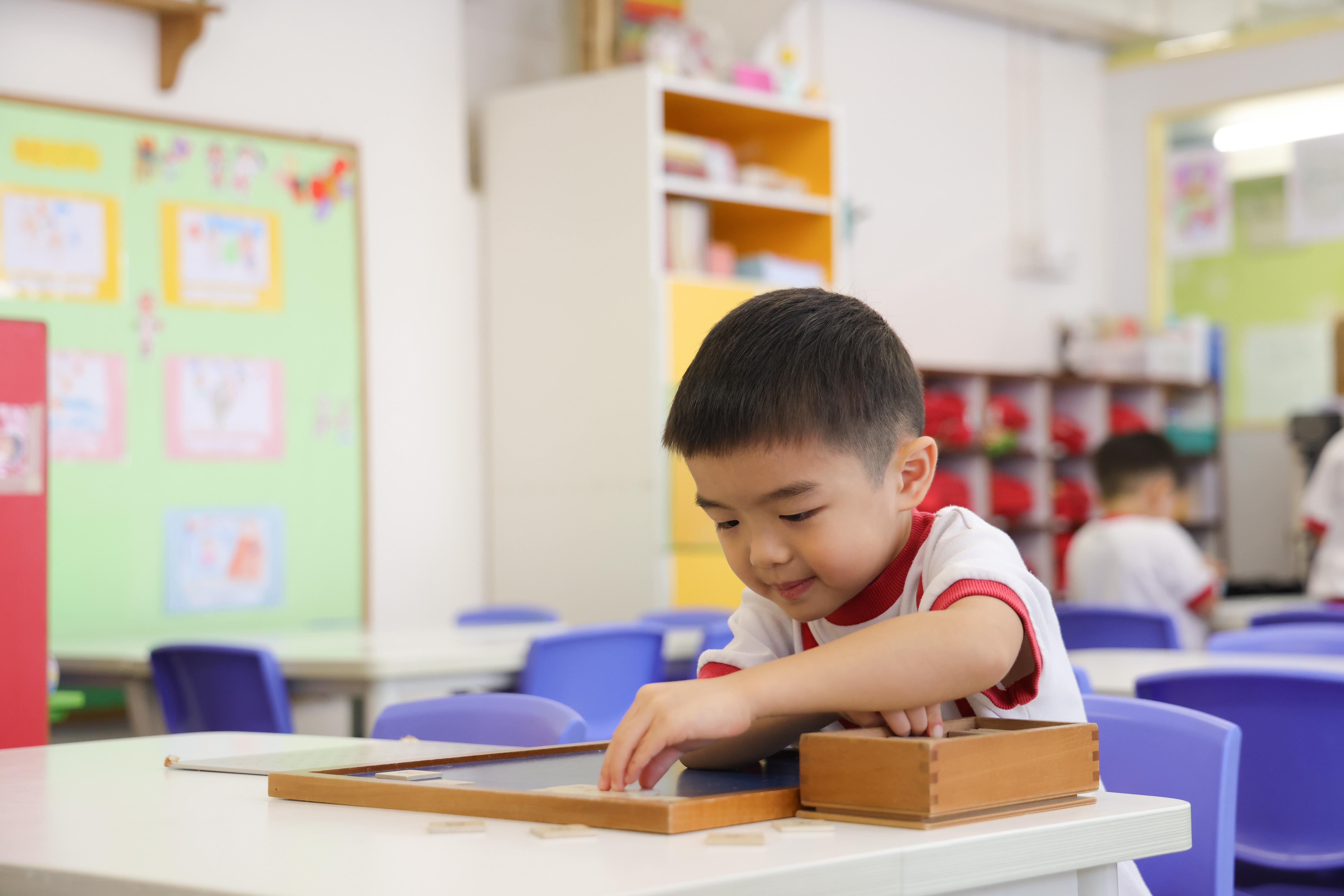 在課程方面,學校以學生的興趣及能力為課程之本,實行專題研習教學法(Project Approach),主張不催谷學生,按學生能力調整課程內容。鄭校長舉例,假如當月的主題為職業,老師會邀請不同職業人士到學校,分享工作內容,甚至安排學生跳出課室,到郵局、消防局等地方參觀,加深了解各種職業。他再舉例,有時一班學生的能力會有高低差異,老師會安排認字較叻的學生多認字,認字能力較普通的學生會調整字詞難易度。學校同時主張學生之間不作比較,只讓學生與自己相比有否進步。