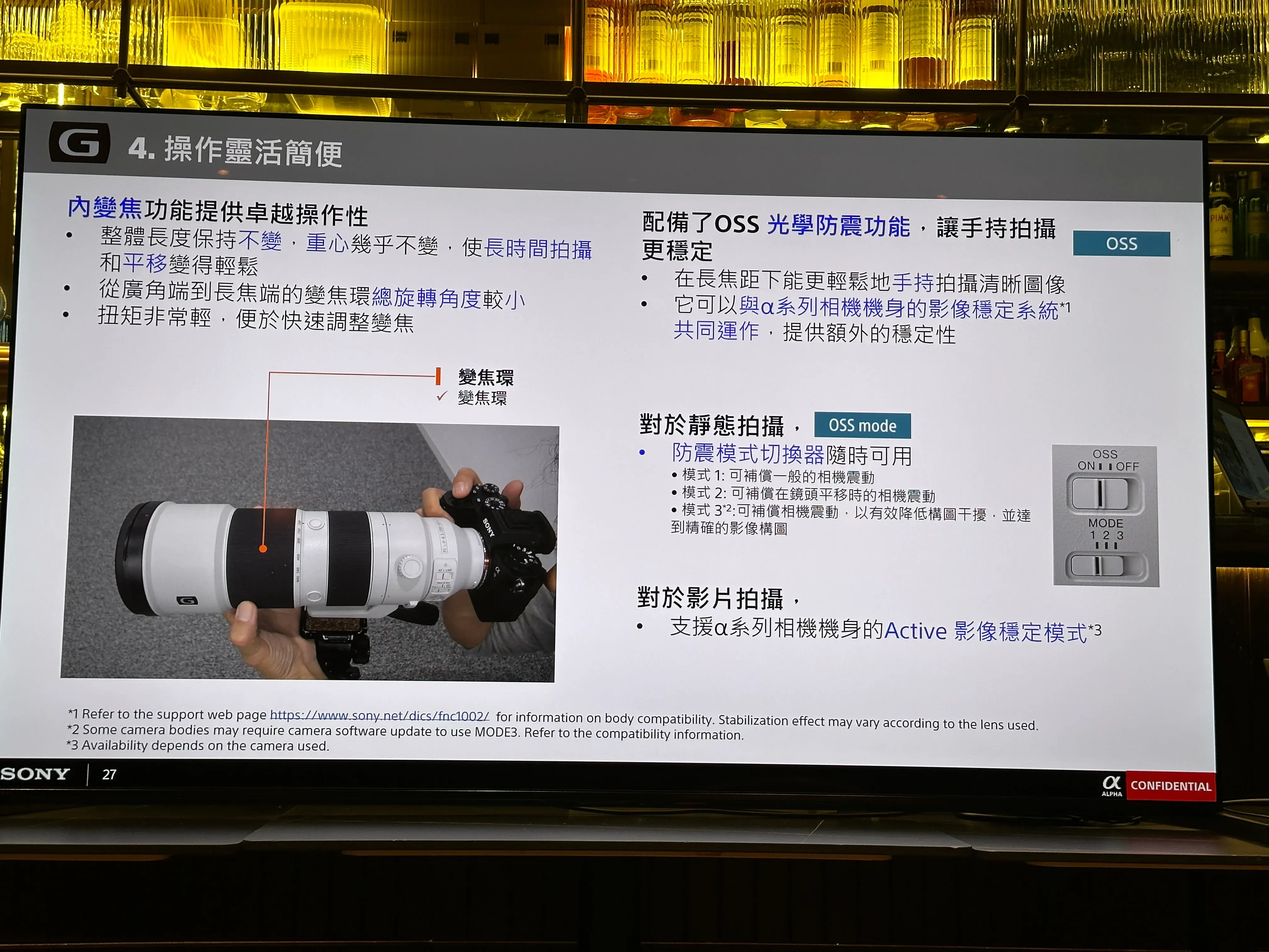 FE 400-800mm F6.3-8 G OSS覆蓋400mm至800mm的超遠攝範圍,並可通過增距鏡擴展至1,600mm。內變焦設計確保對焦時鏡頭長度保持不變,重心不偏移,從而實現穩定的操作和控制。旋轉式變焦環設計,帶來平滑、輕鬆、精確的變焦體驗,並防止意外的焦距變化。