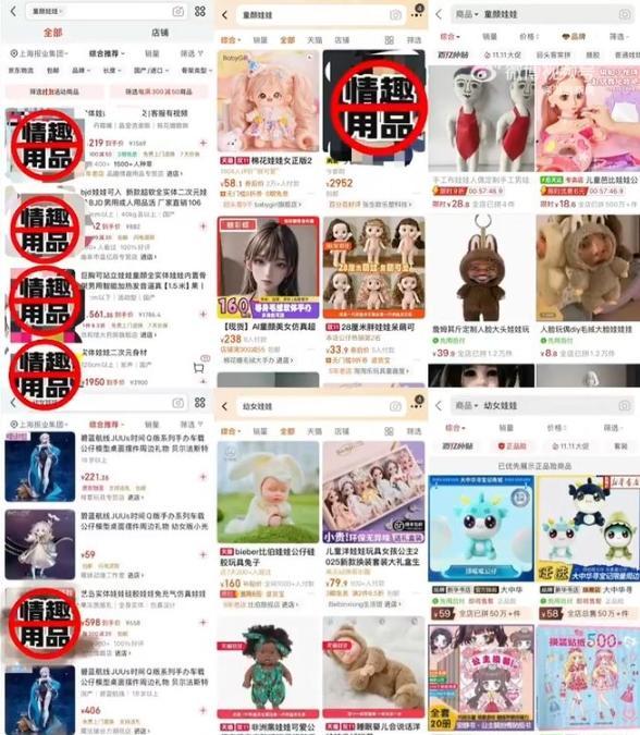 內地多個電商平台銷售具有兒童化特徵的情趣玩偶,目前相關商品皆已下架。(圖/翻攝微博《澎湃新聞》)