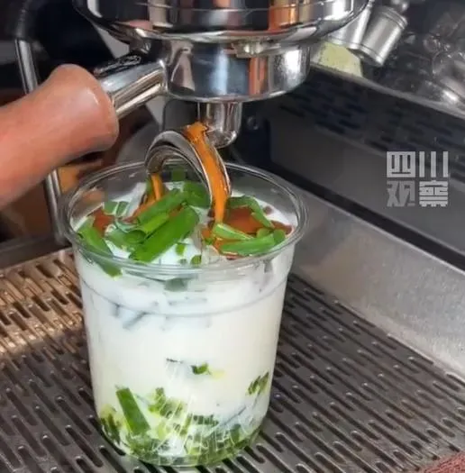 據《四川觀察》報導,影片中製作者先是把大段的蔥花大量放入玻璃杯當中,再加入滿杯的冰塊,接著倒進牛奶,最後加入黑咖啡,並在頂部撒上蔥花裝飾,綠油油的「蔥香拿鐵」大功告成。