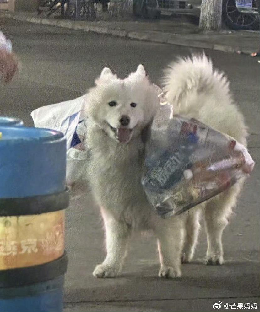 早前有網民於微博上載相片及影片,顯示哈爾濱有一隻西摩犬經常跟著一個婆婆撿拾各種回收物品,還當上工作犬揹負重物,為婆婆減輕負擔,同時可見,狗狗雪白又蓬鬆的毛毛已被弄得污污糟槽,但牠總是笑容滿面,如陽光般燦爛,伴在婆婆的身旁似乎自豪又滿足。網民表示,今年3月開始就看到這隻西摩犬陪同婆婆拾荒的身影,形容狗狗抬頭挺胸,似乎只要在婆婆身邊就快樂。其後有自稱知情網民說,婆婆的兒子不想她拾荒,但怕她一個人寂寞,就買了西摩犬陪她,詎料婆婆帶同狗狗一起去拾荒。