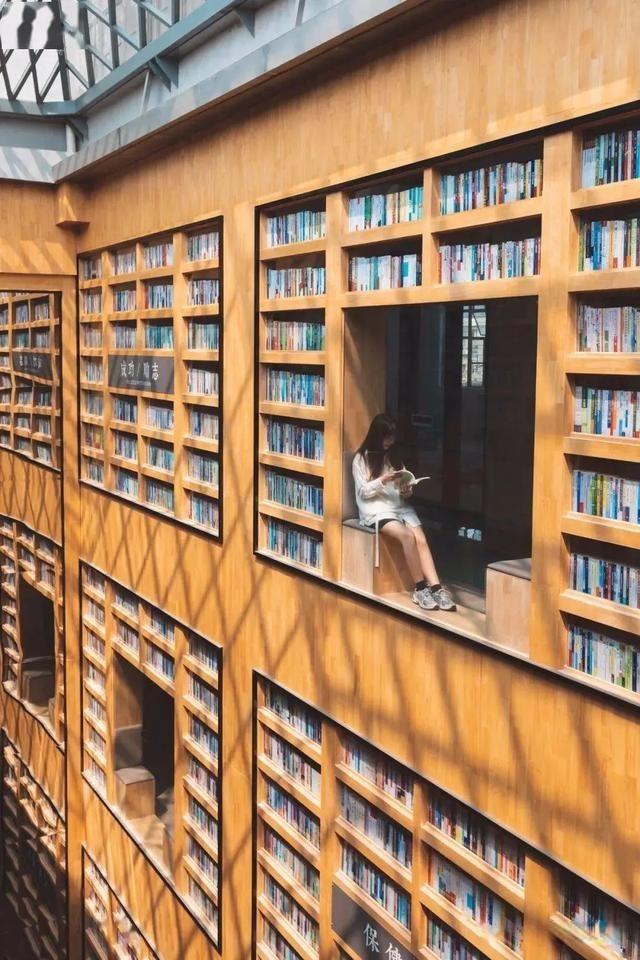 另一個亮點是書店頂層,是由一塊塊玻璃拼砌而成的「金字塔」,從外面看就像法國巴黎羅浮宮的金字塔玻璃幕牆一樣。金字塔式穹頂的采光設計,經過書店特別的鏡面折射,讓整個空間更和諧明亮。陽光透進書店每一個角落,文藝氣息撲面而來!