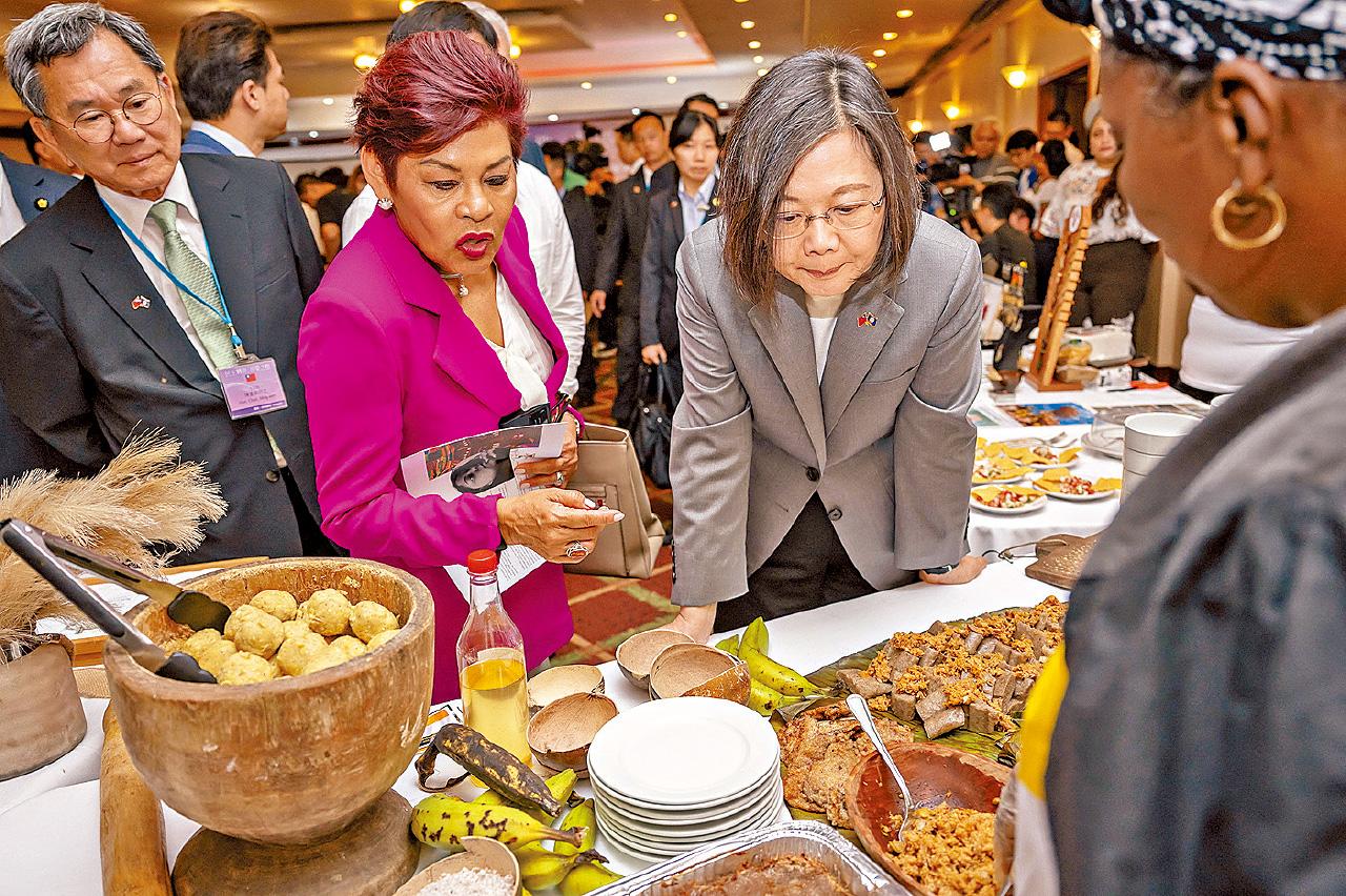 蔡英文早前在伯利茲了解當地婦女的情況。(路透社)