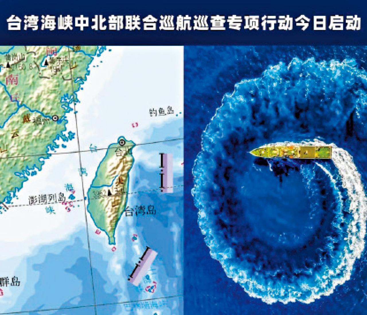 在蔡英文與麥卡錫會面前夕,台方稱解放軍山東號航空母艦昨晚穿越巴士海峽,經台灣東南海域,展開西太平洋航行訓練,台方強調已全程掌握。另外,福建海事局昨突公布,至明日一連3天在台灣海峽中北部聯合巡航巡查,由「海巡06」輪編隊,針對福建平潭對台島直航貨櫃輪航線、小三通客運航線、台海船隻慣用航道、商船漁船航行密集區和非法採砂黑點作現場檢查。不過,公布未提及會否登船檢查。