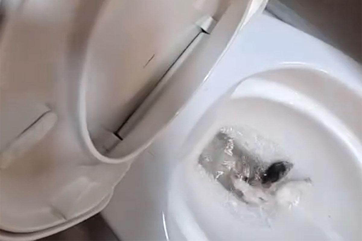 一名女子把倉鼠倒進馬桶沖走,事後獲警方確認為一名失去聯絡多時的外勞。(網上影片截圖)