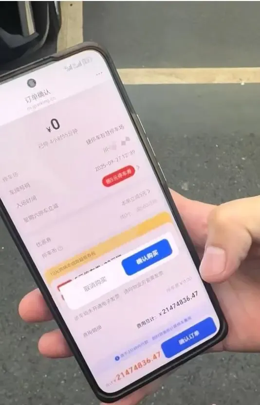 四川一名遊客28日發布影片稱,在四川遊客區泊車近5小時,卻被收取天價費用,繳費單顯示需支付約2,147萬元人民幣(約2,347萬港元),車主無奈表示,這還是使用「停車券減免5元優惠後的最終收費金額」。遊客區人員表示,出現問題的停車場位於遊客區外,對此無法干預。初步調查判定為支付系統在生成帳單時資料異常,導致顯示金額與實際收費嚴重不符。