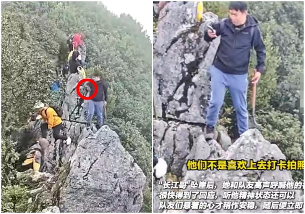 四川省的華鎣山7日發生驚險意外,一名男遊客在山崖自拍期間,不慎從近40米高的懸崖墮落山谷,網上流傳意外事發一刻的畫面,正當人們以為事主凶多吉少時,慶幸男子奇蹟生還,清醒送醫,亦沒有生命危險。