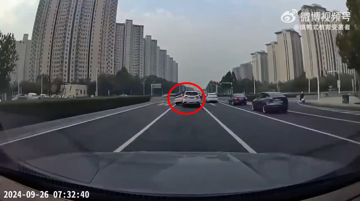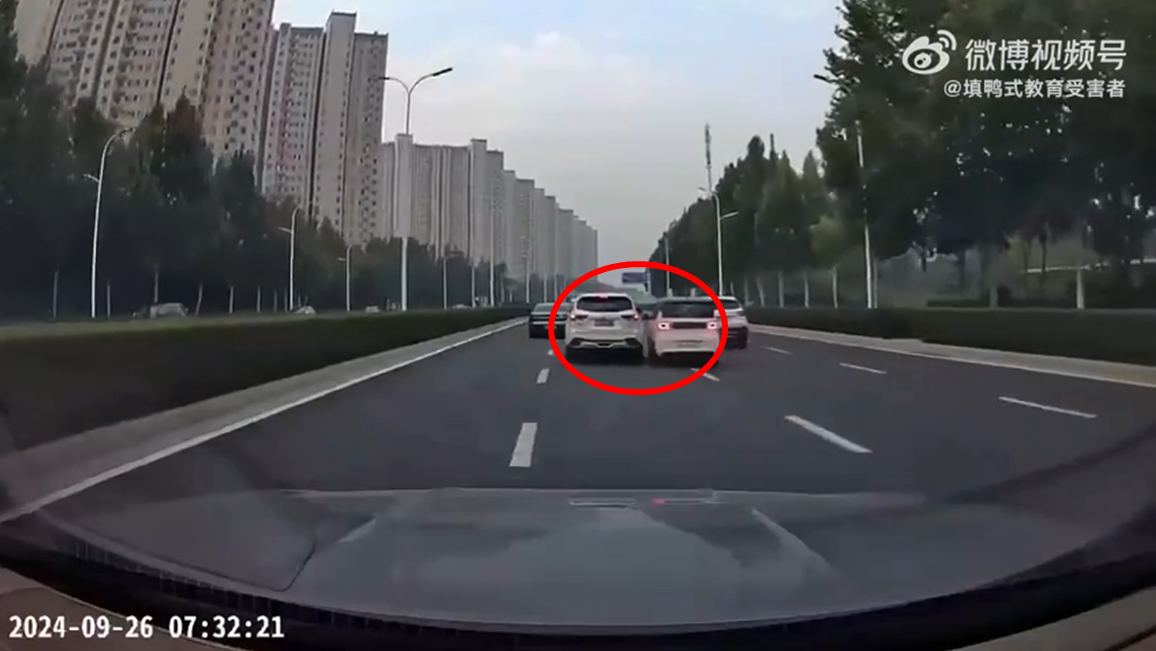據內地《紅星新聞》27日報道,有網傳影片顯示,26日早上7點多上班繁忙時段,在河南省鄭州龍湖外環道路上,有兩輛汽車互爭車道:其中一輛為白色日本豐田越野車,另一輛粉色國產五菱宏光迷你電動車。