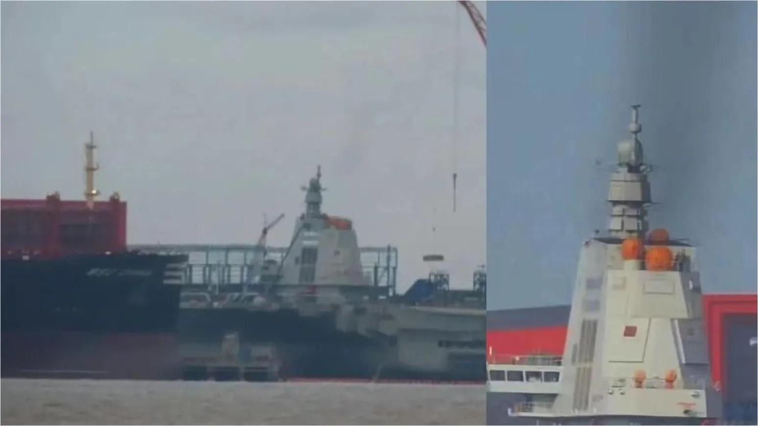 福建艦拆3條電磁彈射器工棚露真容,或10/1首度海試。(圖/翻攝微博)