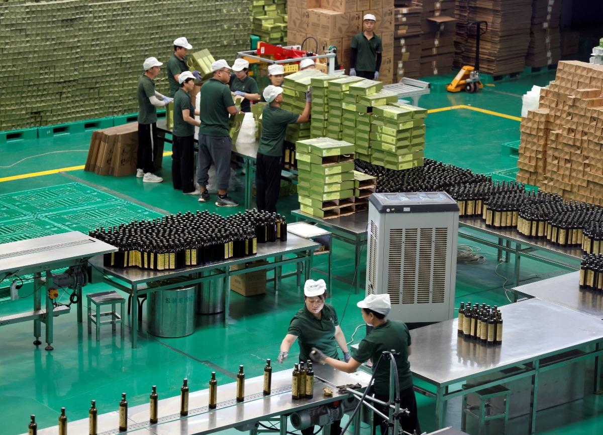 甘肅隴南市武都區一間油橄欖加工企業,工作人員在生產線上作業。(網上圖片)