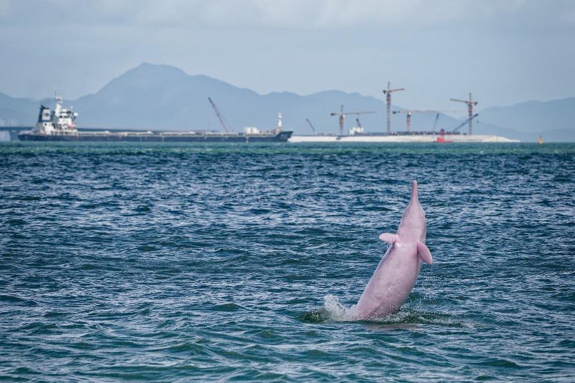 港珠澳大橋建設時,施工船上配有海豚觀察員,以減少誤傷海豚的幾率。(圖片來源:視覺中國)