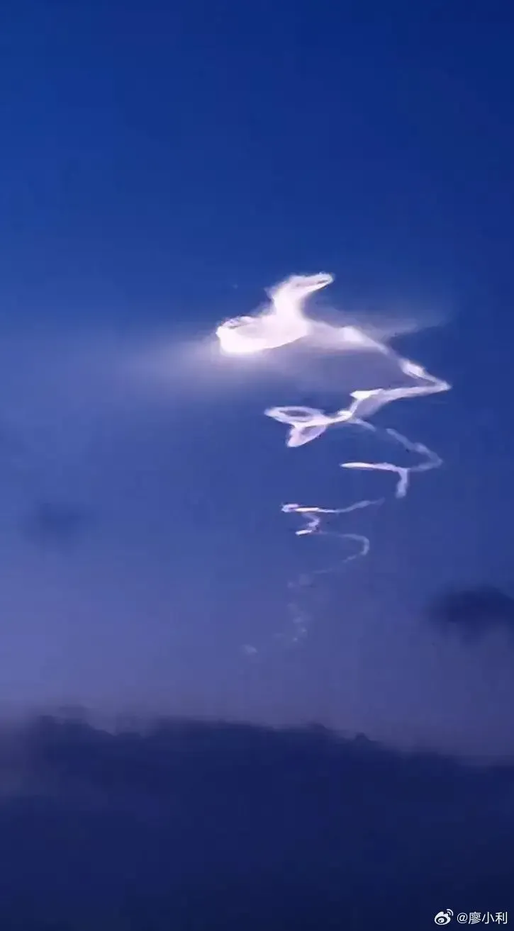 相關話題一度登上熱搜,網友們紛紛留言:「這肯定是外星人的飛船,它們來地球考察,準備和我們建立聯繫了」;「這是在拍科幻片嗎?太壯觀了」;「中國的神秘武器又來了」;「祖國這是又試飛什麼高精尖了」;「該不明發光體實應該是火箭雲」。