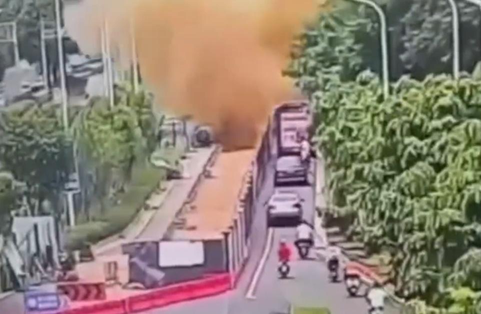 廣西省南寧市一處施工道路周二(24日)上午發生爆炸意外,路面上一輛挖土機當場被炸翻,所幸並未造成傷亡事故。當局證實,該起事故為「化糞池管線破裂」釀災。網上有影片顯示,管道爆裂一刻,10米高黃色污水畫面震撼,附近人和物,以及行經車輛遭受「金泉」洗禮,幾乎無一倖免。