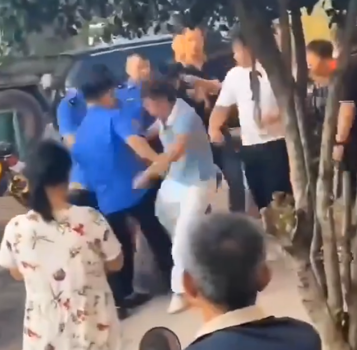 網傳現場影片顯示,數名身穿藍色制服的工作人員將兩位市民圍住,拉扯中兩人被拽倒在地,倒地後仍受到眾人拳打腳踢。人群散開後,遭遇毆打的兩人躺在地上,其中一女子抱著另一位男子痛哭。