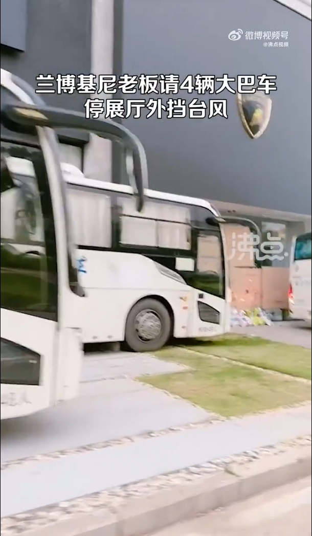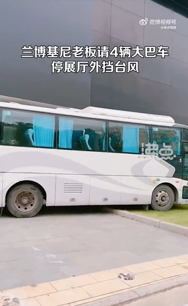 從民眾拍攝的影片畫面中可以看到,不只跑車店門口,許多其他店舖也都出動巴士抵禦颱風,巴士公司的工作人員回應,這些車輛是客戶之前預定的,每輛車每天的租金為600元人民幣,林寶堅尼經銷商老闆計畫租2天,作為颱風防護措施。