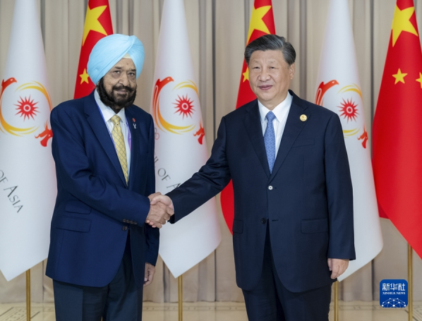 習近平與亞奧會代理主席辛格會面。(圖/新華社)