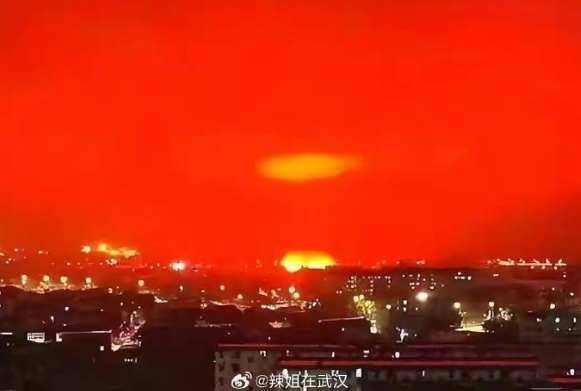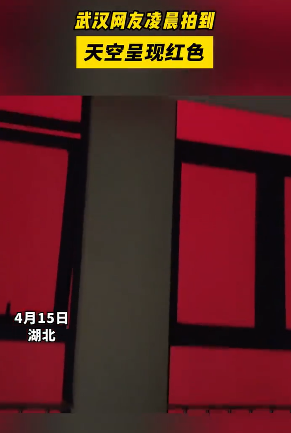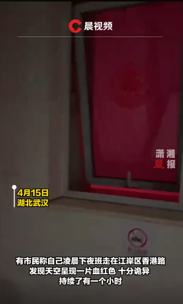 內地湖北武漢周一(15日)有民眾聲稱,凌晨時分下班後在江岸區香港路行走時,看到天空呈現「血紅色」,相關影像隨即引發關注。