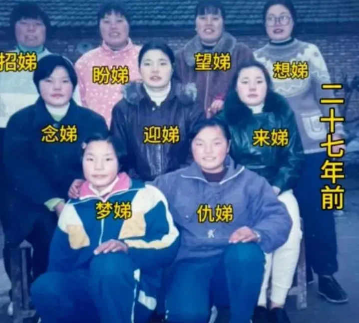 綜合內媒報道,這9姐妹姓嵇,從大女兒到最小的女兒,名字分別是招娣、盼娣、望娣、想娣、念娣、迎娣、來娣、夢娣和仇娣,足見其父母非常想生出男孩。