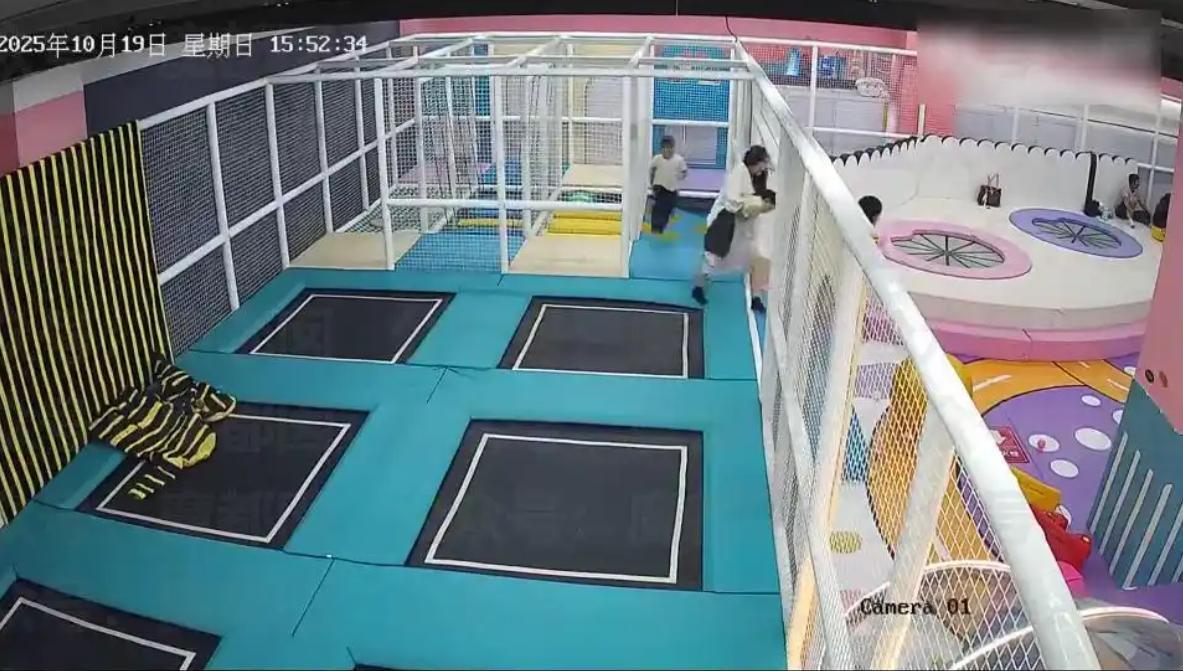 綜合內媒報道,閉路電視畫面顯示,10月19日下午3時49分,兩名孩子在彈翻床遊樂區內追逐玩鬧。3時51分,身穿綠衣的兒童突然跌倒坐下,隨後踉蹌走至一遊樂設施後方。白衣兒童見狀跑去查看,畫面中可見綠衣兒童掙扎後倒在彈跳床處,整個過程約30秒。隨後白衣女子和黑衣女子趕到現場,將綠衣兒童抱出監控範圍。