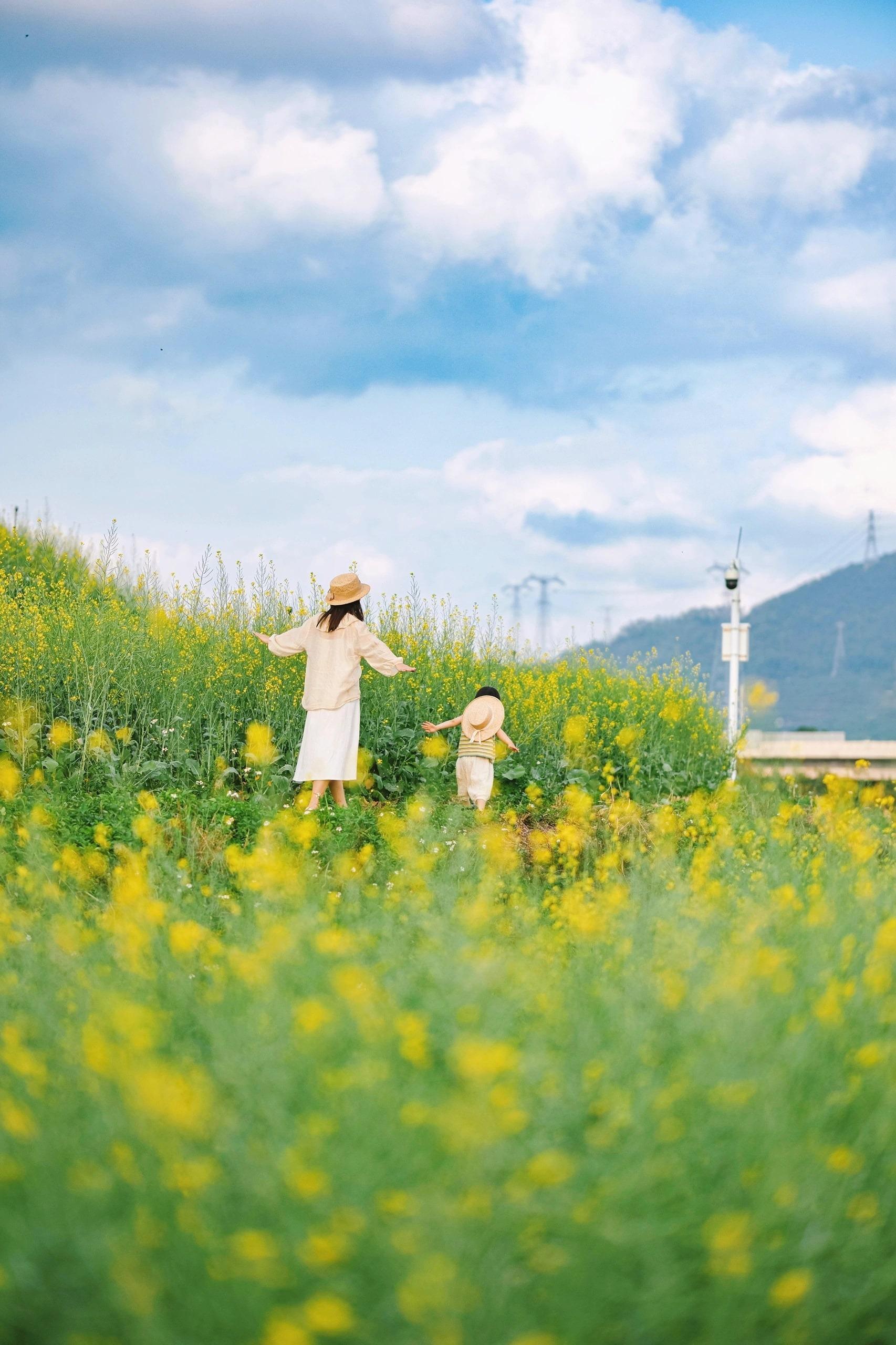 值得一提的是,在油菜花田的不遠處,坐落了一條高架鐵路,這裏其實是贛深高鐵的線路,大家幸運的話,還可以利用錯位攝影,拍下一輛輛列車在油菜花田飛馳而過的畫面!