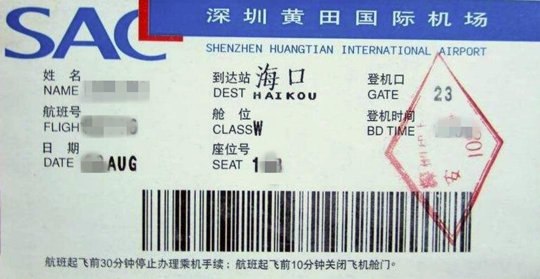 「深圳黃田國際機場」的名稱大約使用了3年。圖為「深圳黃田國際機場」年代的登機牌。(網上圖片)