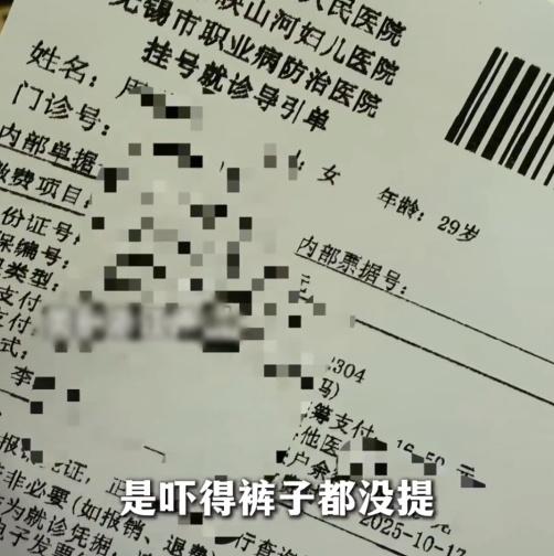 周女士驚魂未定,事後到醫院檢查,所幸沒有受傷。(微博)