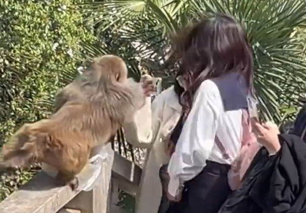 內媒報道,前日(26日)在江蘇省蘇州市一名女子與朋友到景區遊玩,其後看見一隻猴子坐在欄杆上,後將手上零食作餵食,竟然野生獼猴慘遭掌摑,當場呆在原地。
