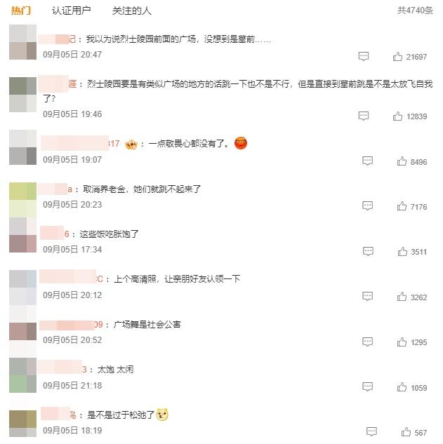 事件曝光後引發網民關注,不少網民紛紛批評在烈士墓碑前跳舞行為:「我以為說烈士陵園前面的廣場,沒想到是墓前……」、「直接到墓前跳是不是太放飛自我了?」、「一點敬畏心都沒有了」、「廣場舞是社會公害」。