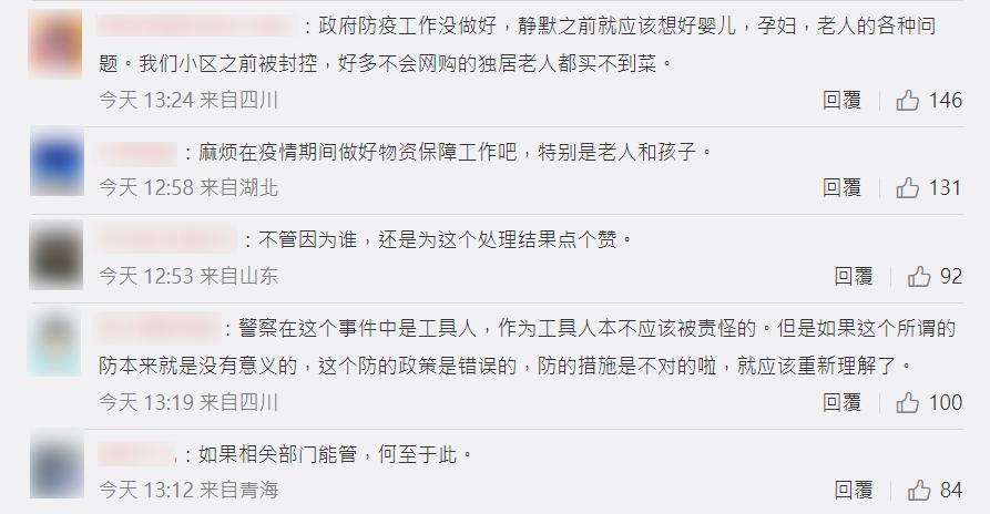 警方的通報再度掀起網民熱議,不少網民都讚「有溫度的執法」、「處理結果還是比較妥當的」,但也有網民直言,「如果不是廣大網友持續發聲,可能是另外一種結局了」、「100塊錢都不應該罰,這100塊錢應該讓他去買奶粉」、「聽這個意思還得感謝你們高抬貴手了?!你們能不能開個會告訴那些個防疫上癮層層加碼的人,幫群眾解決問題切實了解百姓疾苦才是長治久安的正確方式」。