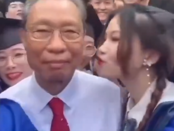 鍾南山出席畢業禮被美女醫科生獻吻