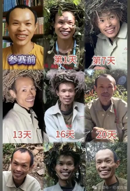 荒野求生賽事其中一名參賽選手參賽前後對比。